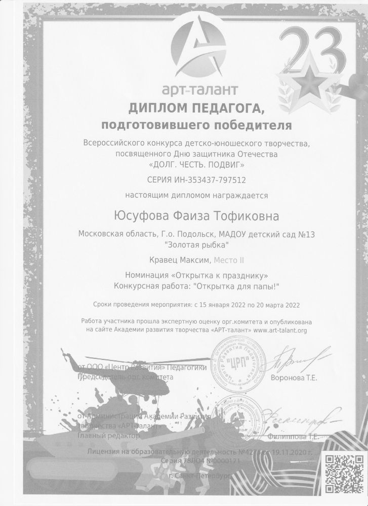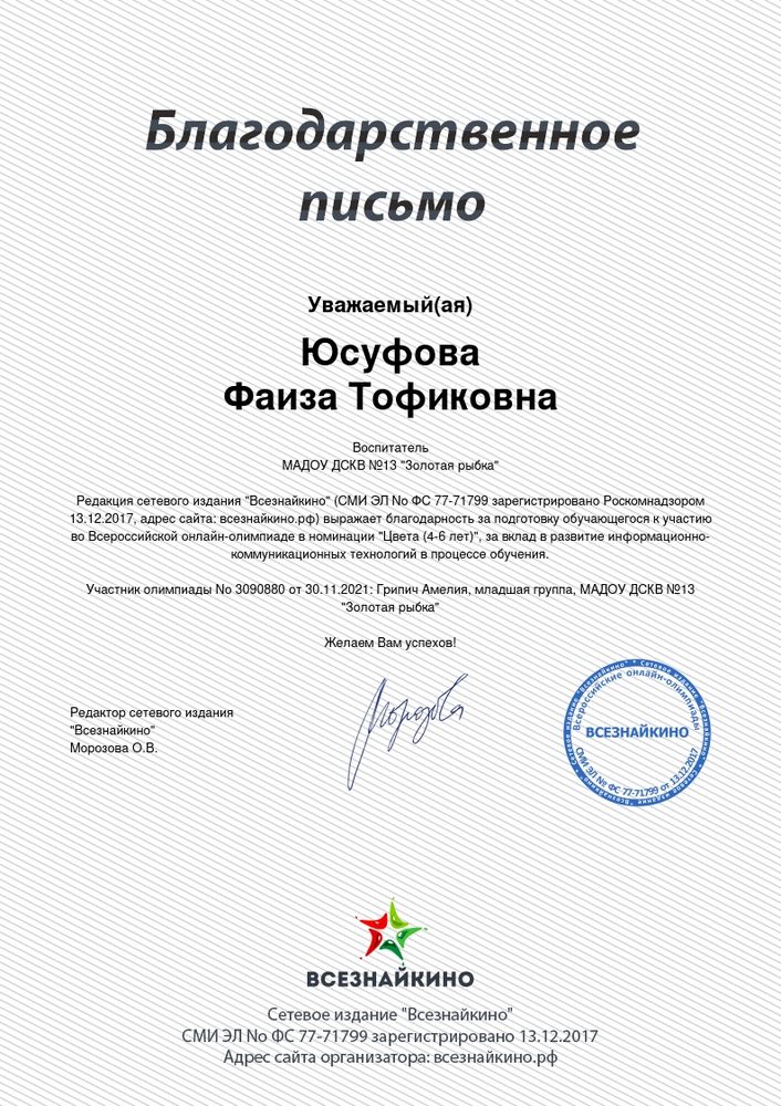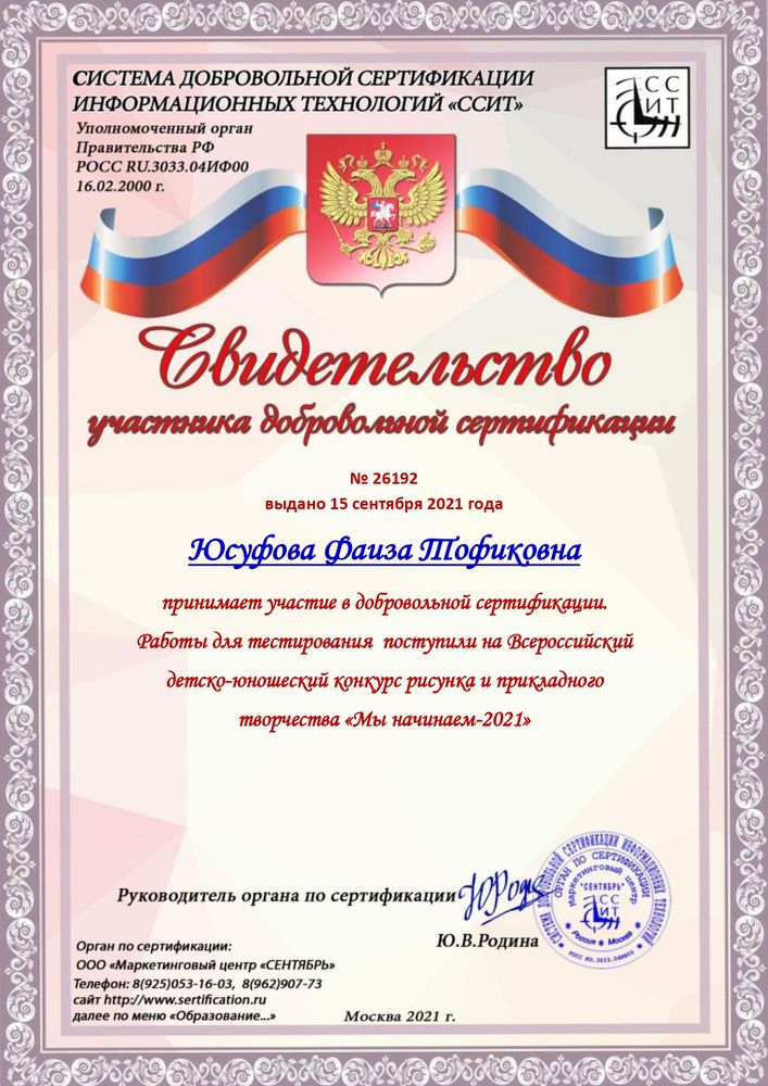 Юсуфовой Фаизы Тофиковны